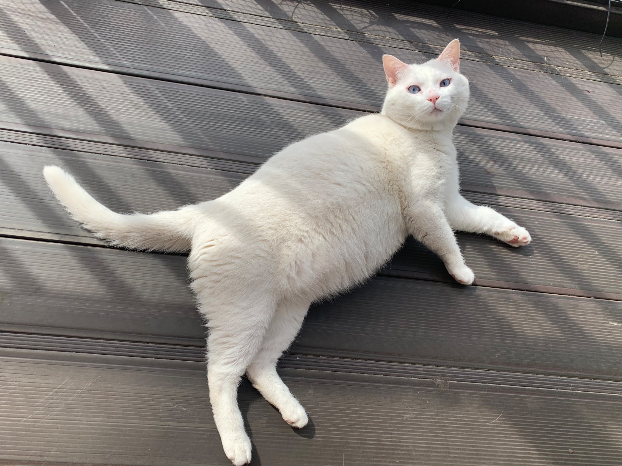 特に白猫さん、とりわけ青目の子は紫外線が危険なので。(発ガンリスクが高い)
