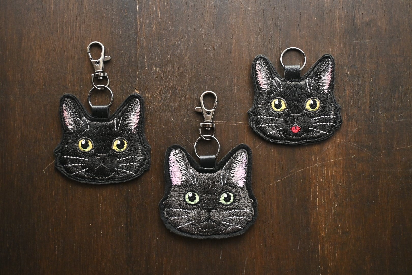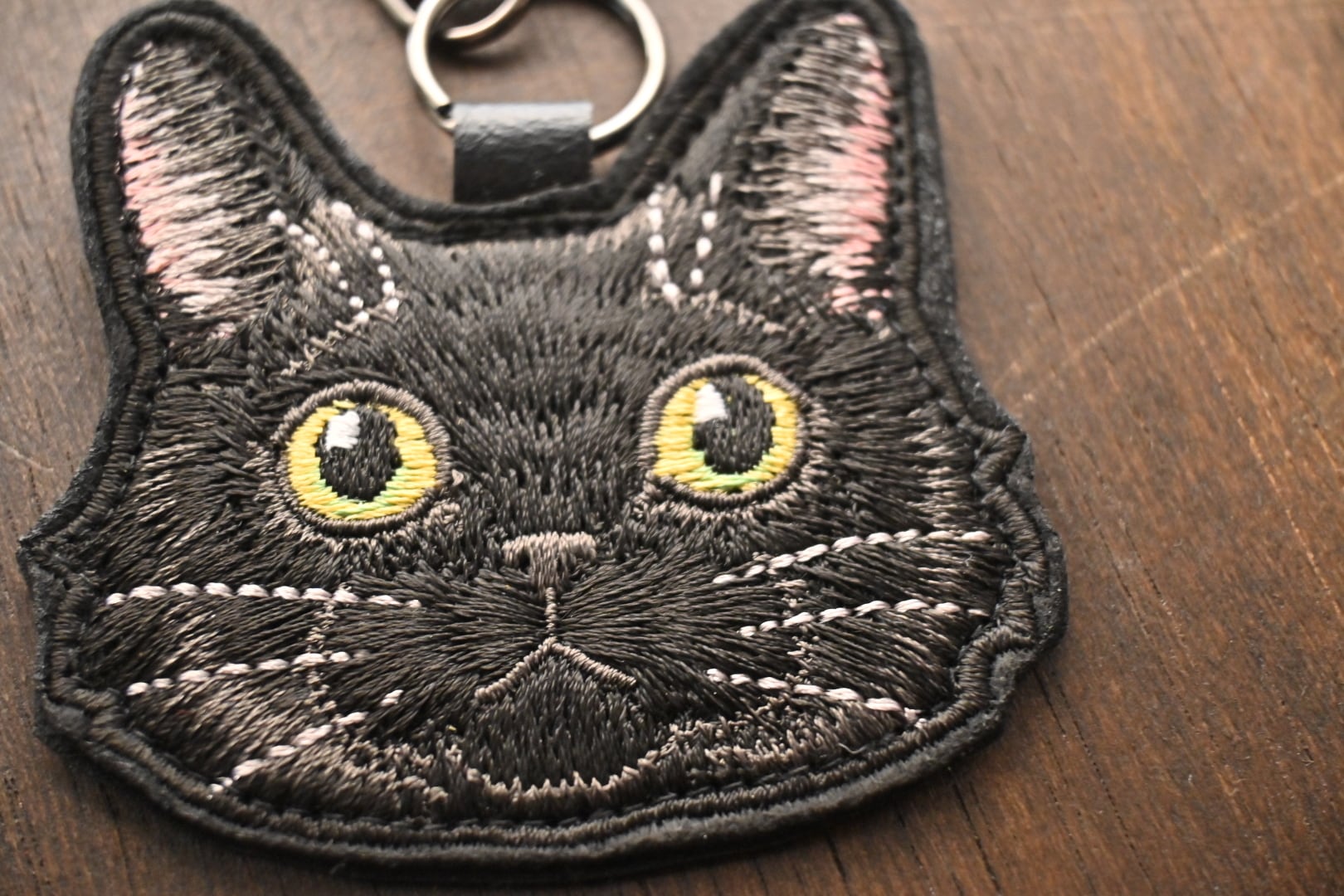 黒とグレーの猫ちゃんキーホルダー【長毛】
