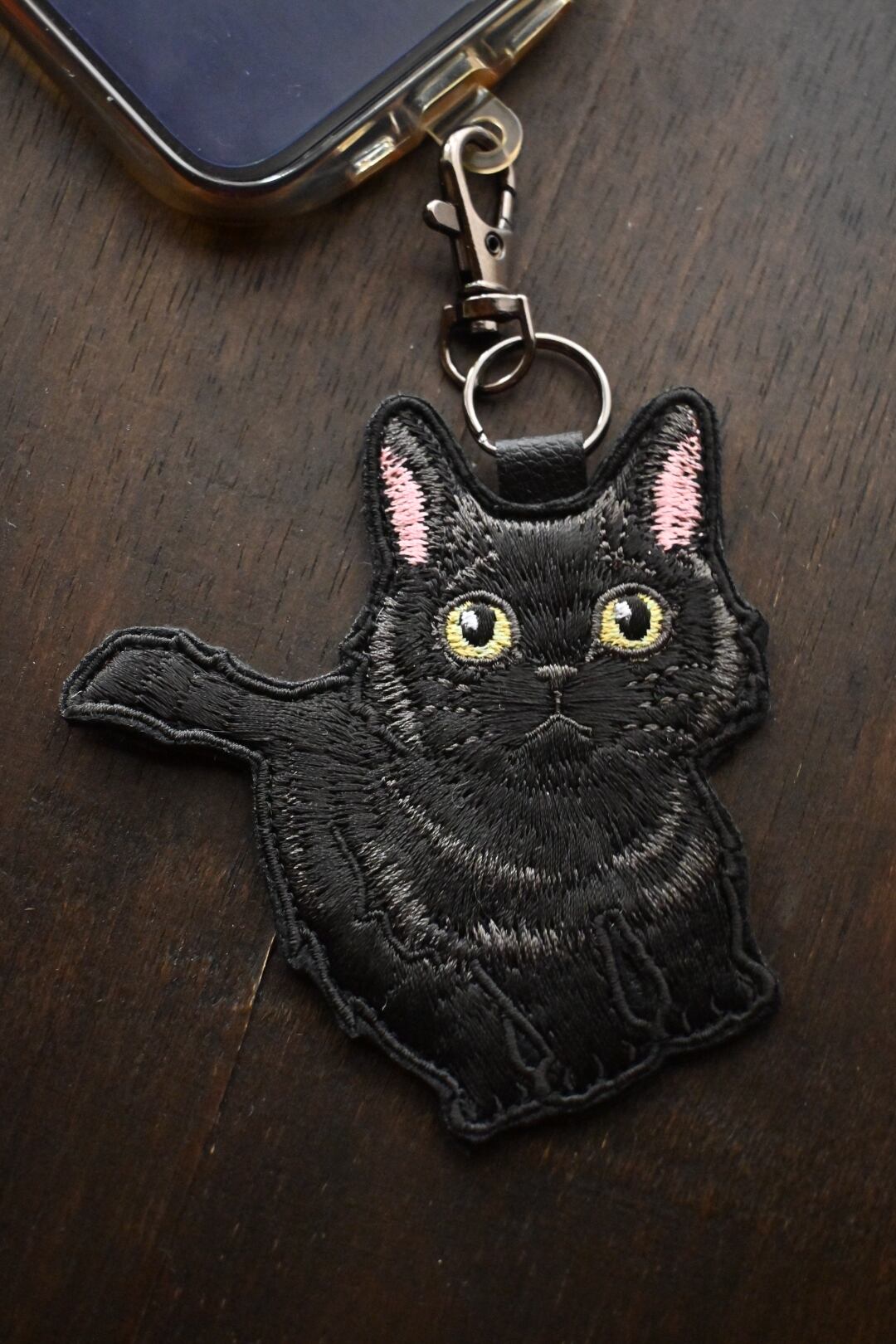 刺繍黒猫長毛ちゃんのキーホルダー【全身】