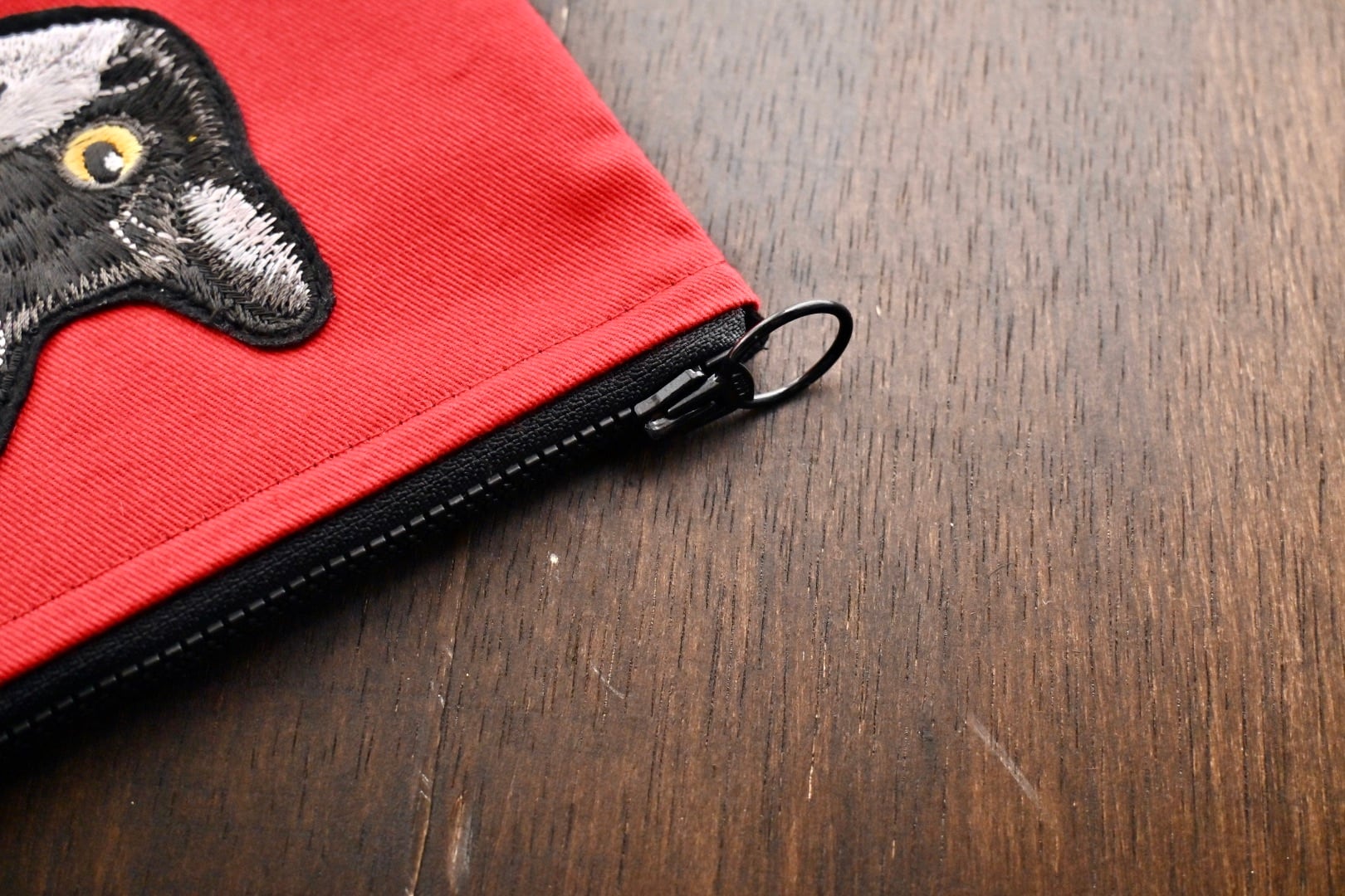 こちらは白黒猫ちゃん×レッドミニポーチ。