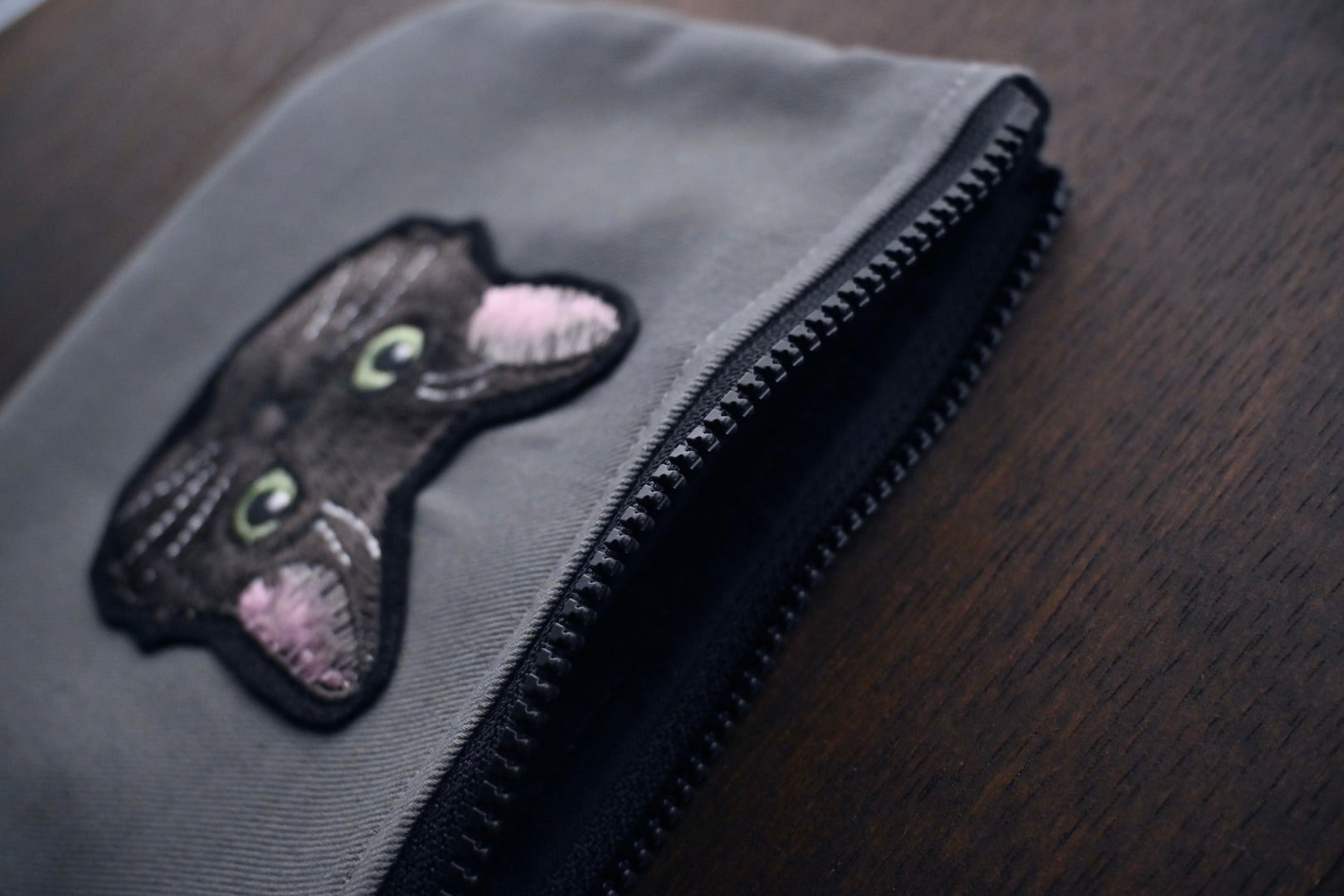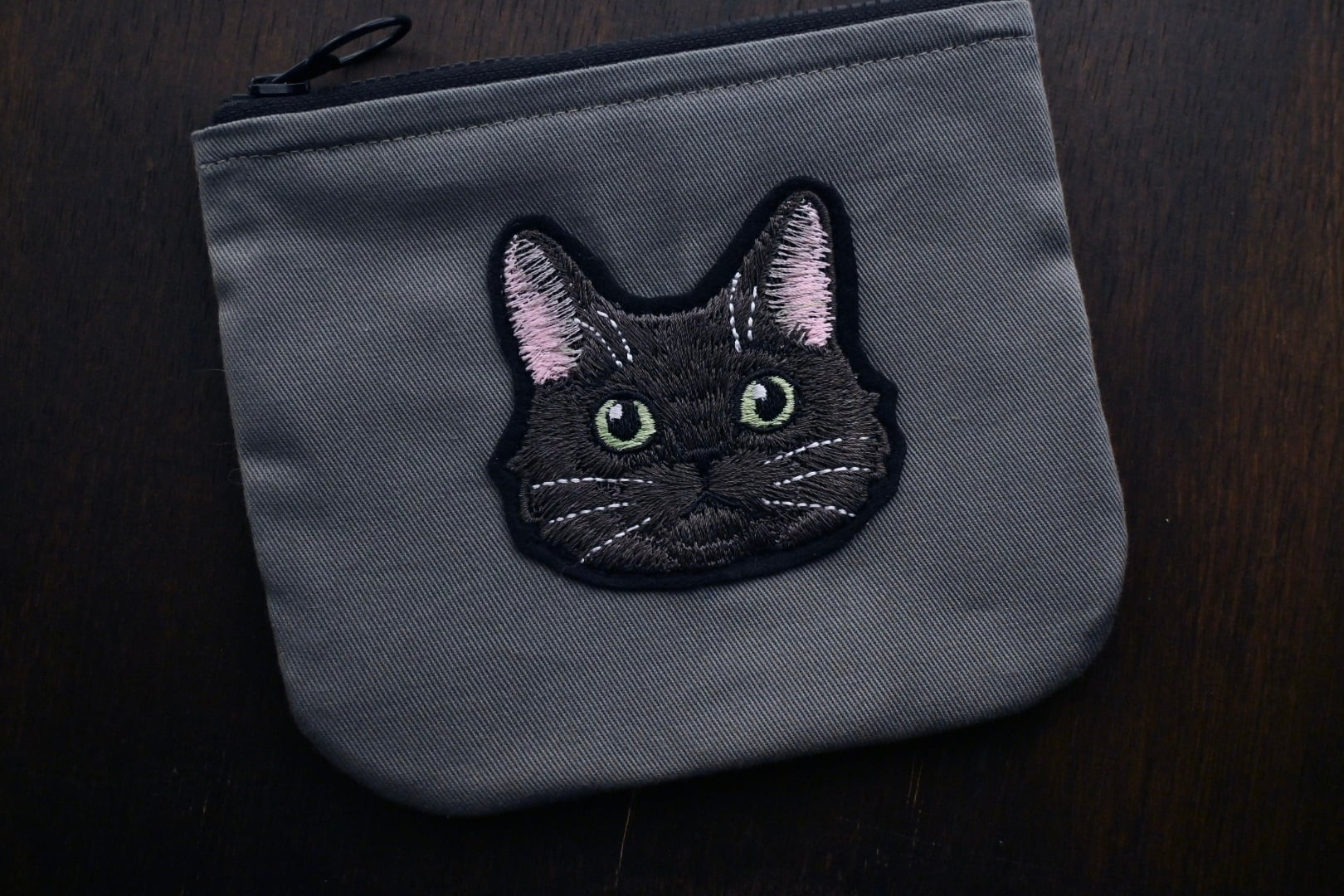 刺繍猫ちゃんたちのミニポーチ【長毛グレーちゃん】