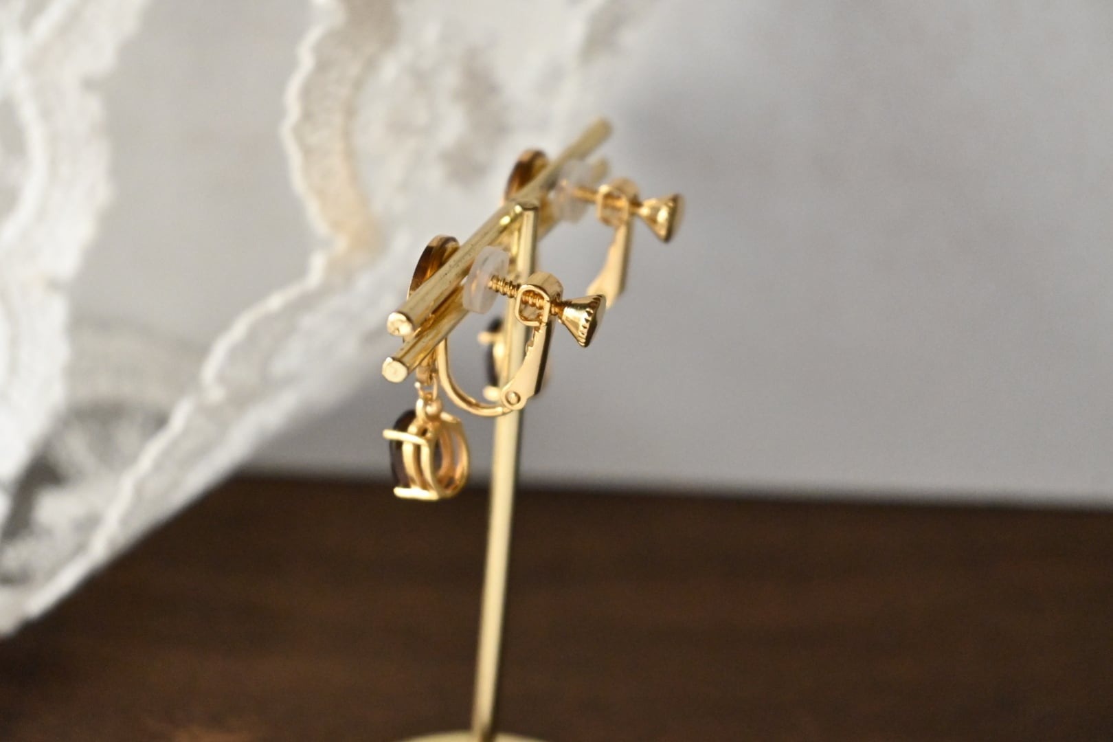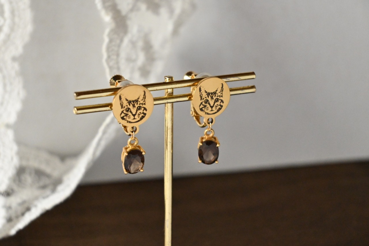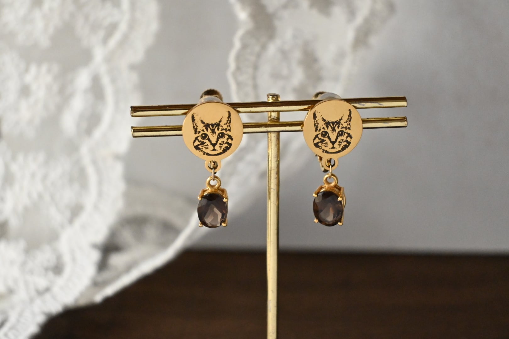 オーバルファセットカットのスモーキークォーツを使用したピアスの耳飾りです。