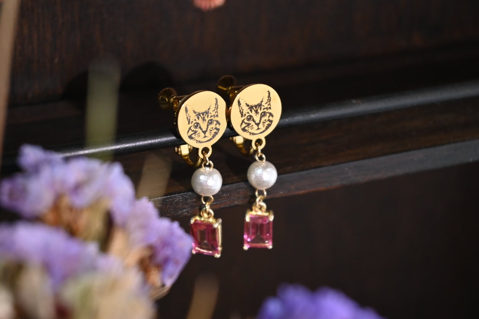 ・レーザーで猫ちゃんのお顔を刻印しています。