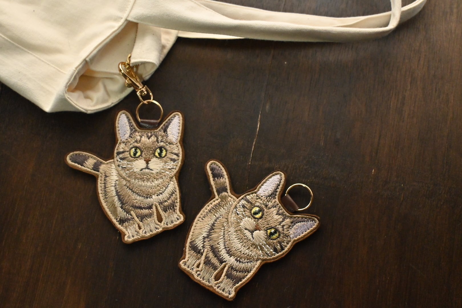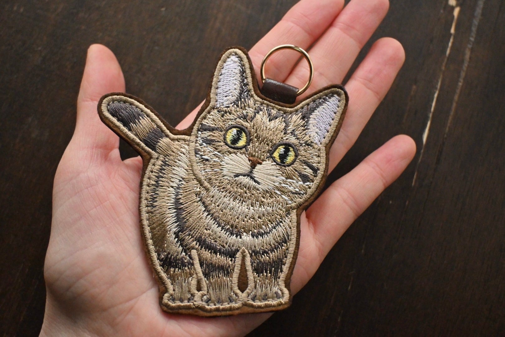 刺繍キジトラ短毛ちゃんキーホルダー【全身】