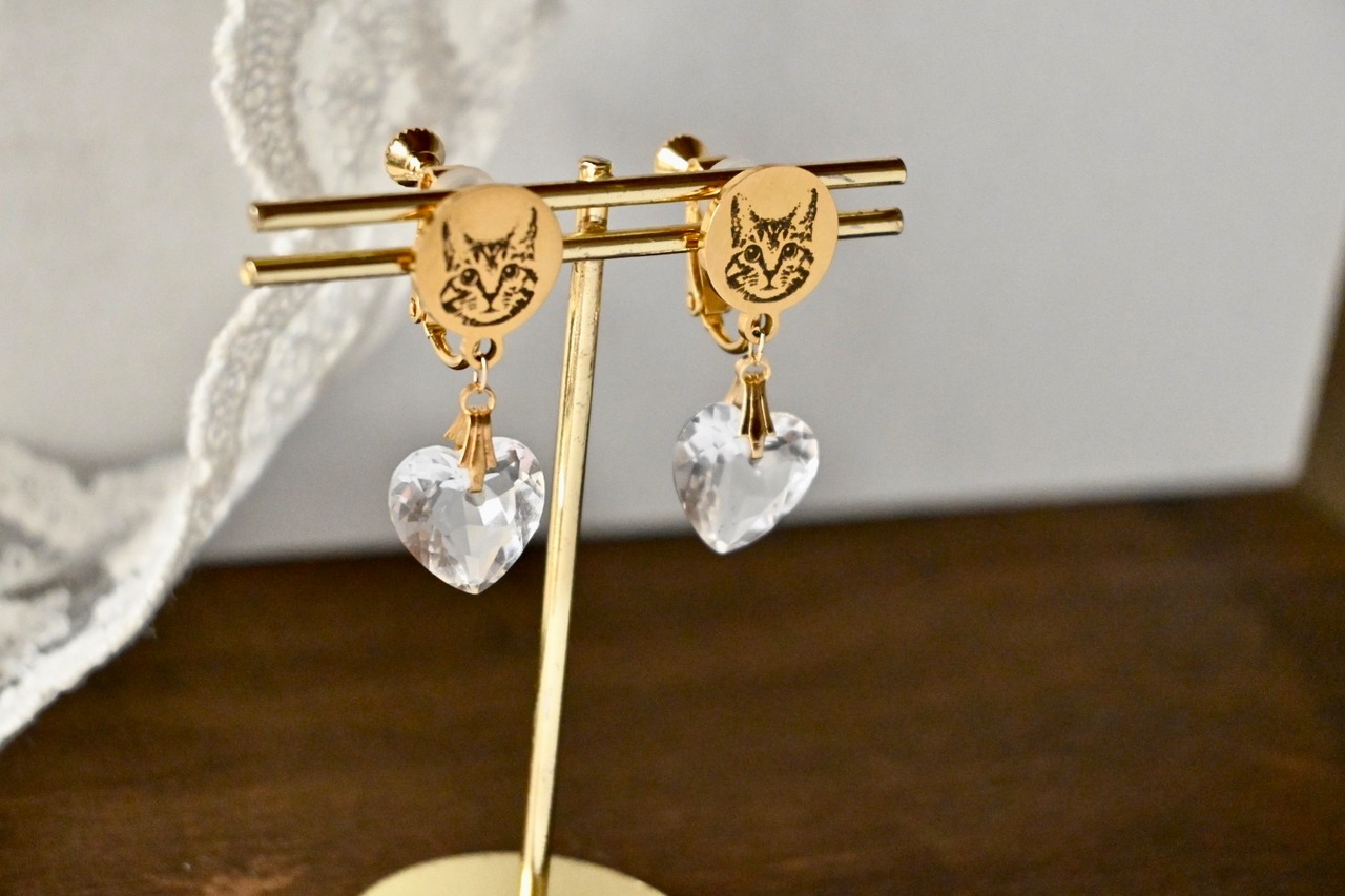 水晶(クリスタル)のシェイプカットハートを使用しています。