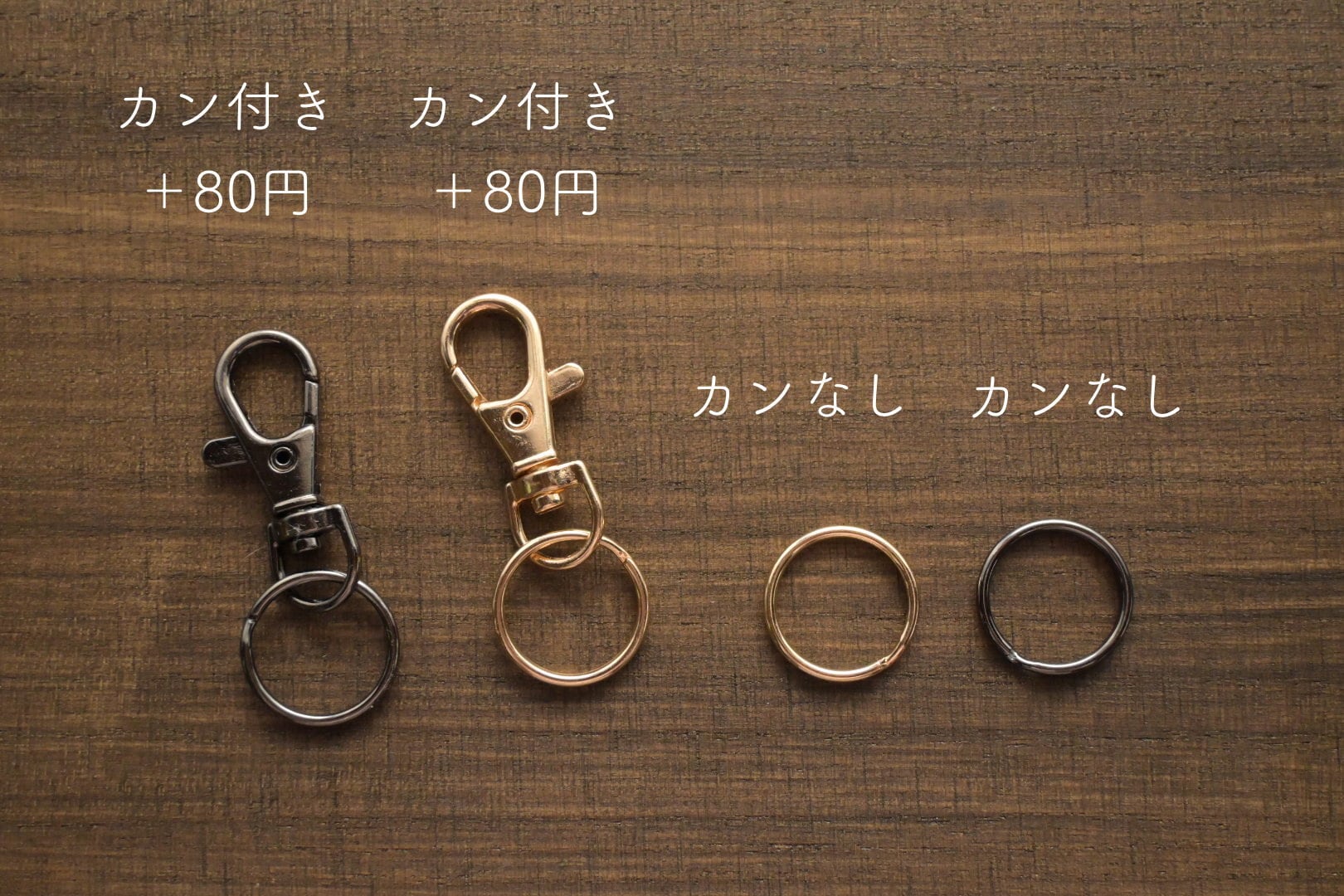 ご注文の際に、裏側の素材と「カン付き」「カンなし」どちらかをカートに入れておすすみくださいませ。