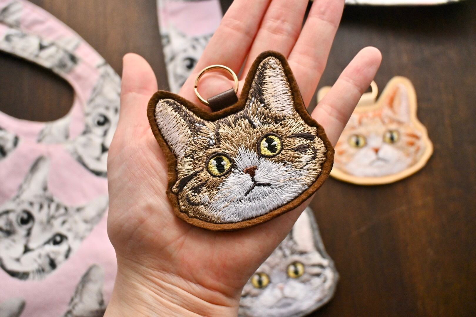 ハチワレトラ柄猫ちゃんのキーホルダー【長毛】